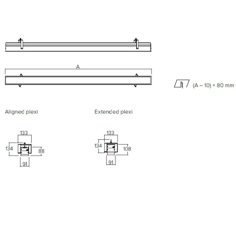 - Tělo svítidla z eloxovaného nebo práškově lakovaného hliníkového profilu