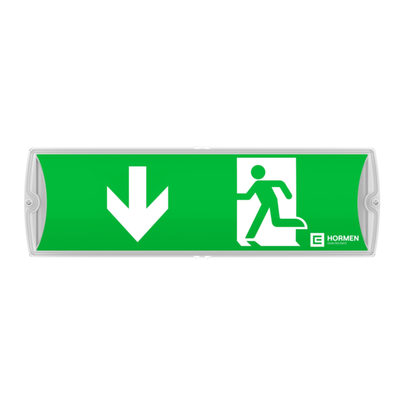 Přisazený nouzový LED piktogram, svítící trvale, nebo při výpadku napájení po dobu 3h. Zvýšený stupeň krytí IP65. Vybaveno autotestem. Svítidlo má možnost přepnutí výkonu mezi dvěmi stupni 100lm a 200lm. Výkon svítidla je tak možné upravit dle požadavků projektů. Dohledová vzdálenost 20m. Tělo svítidla z polykarbonátu. Svítidlo bez piktogamu lze použít jako antipanické osvětlení.