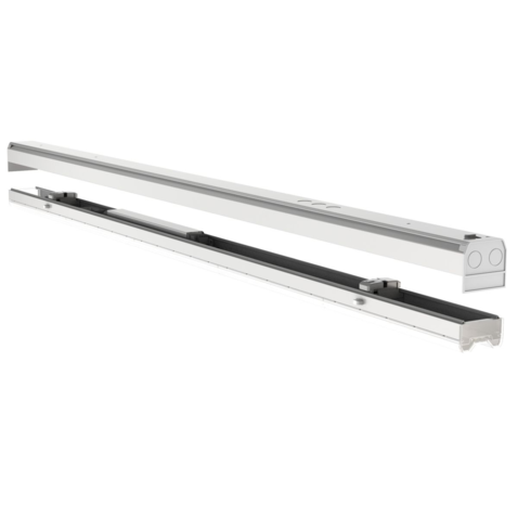 Moderní LED lištový systém pro průmyslové a komerční prostory, který kombinuje vysokou účinnost, flexibilitu a jednoduchou instalaci. Modulární konstrukce a předem definované konektory umožňují rychlou montáž bez použití nářadí. Lišty se svítidly lze umístit v rozestupech 1410 mm a spojovat do souvislých linií. Tělo svítidla je vyrobeno z ocelového plechu s práškovým lakováním. Optiky z PMMA zajišťují vysokou účinnost, nabízí širokou škálu vyzařovacích úhlů: 30°, 30×90°, 60°, 60x90°, 90°, 130°, D25°, A25°. Systém umožňuje průběžné prodrátování pomocí až 11 žil, senzory pohybu a denního osvětlení i nouzové moduly. Světelné lišty jsou vybaveny elektronickým předřadníkem nebo stmívatelným elektronickým předřadníkem s podporou protokolu DALI-2 pro snadné začlenění do inteligentních osvětlovacích systémů. Nabízí světelnou účinnost až 180 lm/W. Certifikace ENEC, CE a krytí IP50 garantují bezpečnost a spolehlivost.